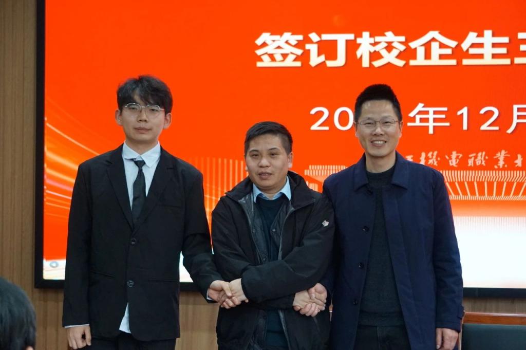 自动化学院党总支书记陈罡为海天现场工程师项目班班主任罗辰、潘庭超颁发聘书