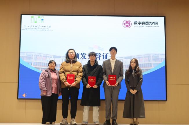 为深入贯彻党的二十大精神,积极践行习近平总书记关于职业教育的重要论述,数字商贸学院于12月19日在19-106成功举办了2024年企业(“轩兜”)奖学金颁奖典礼。此次活动旨在通过奖学机制激励学生全面发展,推动校企协同育人再上新台阶。杭州轩兜教育科技有限公司总经理袁烊琴、学院党总支副书记李君、辅导员全璐以及全体获奖学生和部分学生代表共同出席了颁奖典礼。