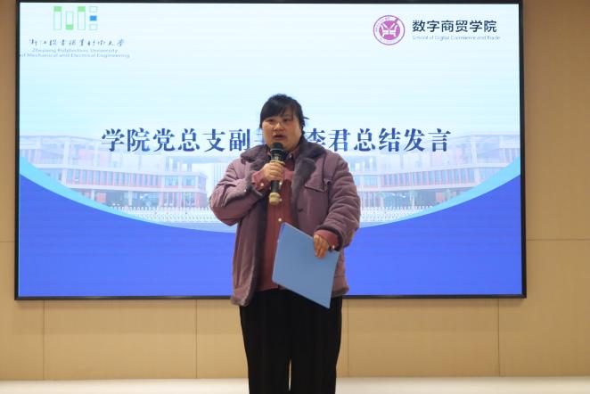 最后,学院党总支副书记李君在总结发言中,对“轩兜”教育对学院人才培养的支持表达了诚挚谢意,并向获奖同学表示热烈祝贺。李君对全体学生提出了三点期望:一是持续发挥榜样作用,带动同学共同进步;二是心怀感恩,未来反哺学校,促进更多校友奖学金涌现;三是号召其他同学以获奖者为榜样,为学校职业本科大学建设及5A平安校园迎评奋力拼搏。李君的讲话为同学们的成长成才提供了有益指导。