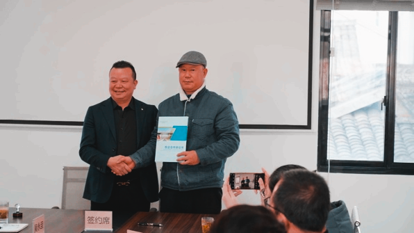此外,借此次座谈会之机,我院与巍山镇古渊头村的两家企业,东阳市强兴有限公司、浙江九运古建进行了友好交流,对之后进一步的项目合作展开了深入的探讨与展望,最后双方都在现场直接签订校企合作意向书,为今后的校企合作达成战略协议。