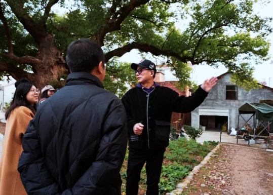 创意设计学院师生一行对古渊头村文旅情况展开调研。在乡贤李耕民先生带领下游览了古渊头村,对村容村貌、古建、古樟、古渊、古墩墓这“四古”文化进行深入了解与实地考察。学生们还饶有兴趣地观赏了师兄师姐们暑期在古渊头村留下的墙绘艺术作品。师生一行来到了古渊头新建的露营基地和研学基地,为村里的文旅发展献计献策。在这片被文化底蕴深深浸润的土地上,感受那份沉淀了几百年的韵味与风情,为古渊头村文风鼎盛、人才辈出而啧啧称赞。