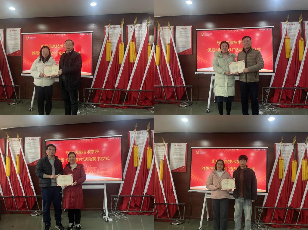 为弘扬教育家精神,发挥骨干教师“传帮带”的引领示范作用,促进青年教师教育教学水平的不断提高,努力锻造一支高素质教师队伍,现代信息技术学院深入开展“青蓝工程”师徒结对工作,并于12月18日下午举行“师徒结对”聘书颁发仪式。现代信息技术学院领导班子、全体教职工参加仪式。仪式由学院副院长卢成浪主持。