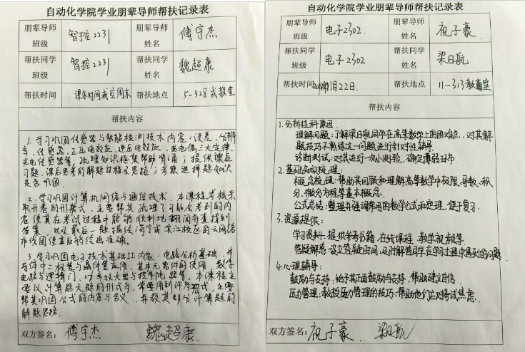 学院鼓励发挥朋辈教育的辐射带动作用,激发学生学习内生动力,精准开展学业帮扶。大一年级,学院针对《高等数学》《电工基础》《电子技术基础》等重难点课程,设立了“朋辈互助联盟”,聘任一批思想政治素质较高、学习成绩优异的学生担任朋辈小讲师,通过知识梳理、习题讲解等方式,帮助其他学生巩固基础知识,提高学习成绩。