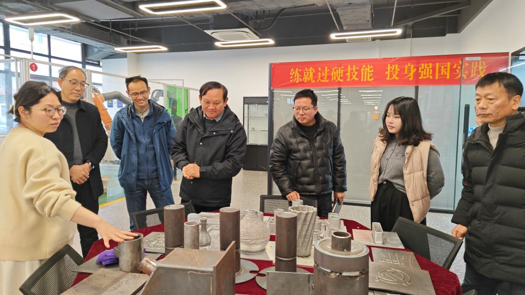 12月31日上午,诸暨市店口镇党委书记张营、党委副书记何建淼、浙江鸿森机械有限公司董事长周水根一行来到我院调研。学校副校长戴光麟、智能制造学院院长程方启、增材制造学院副院程文锋等相关领导参加调研。