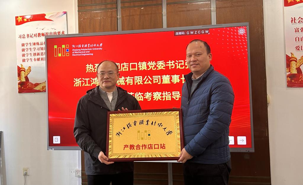 会上,戴光麟与店口镇党委书记共同见证了产教合作店口站的颁发。