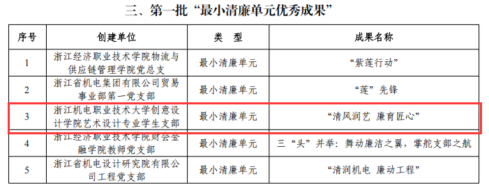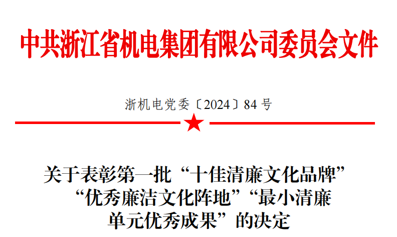 近日,浙江省机电集团召开2025年反腐倡廉建设工作会议,会议对集团第一批“十佳清廉文化品牌”“优秀廉洁文化阵地”“最小清廉单元优秀成果”进行了表彰。我校“清雅机电”廉洁文化品牌、创意设计学院艺术设计专业学生支部获评第一批清廉建设项目“十佳清廉文化品牌”及“最小清廉单元”优秀成果奖。