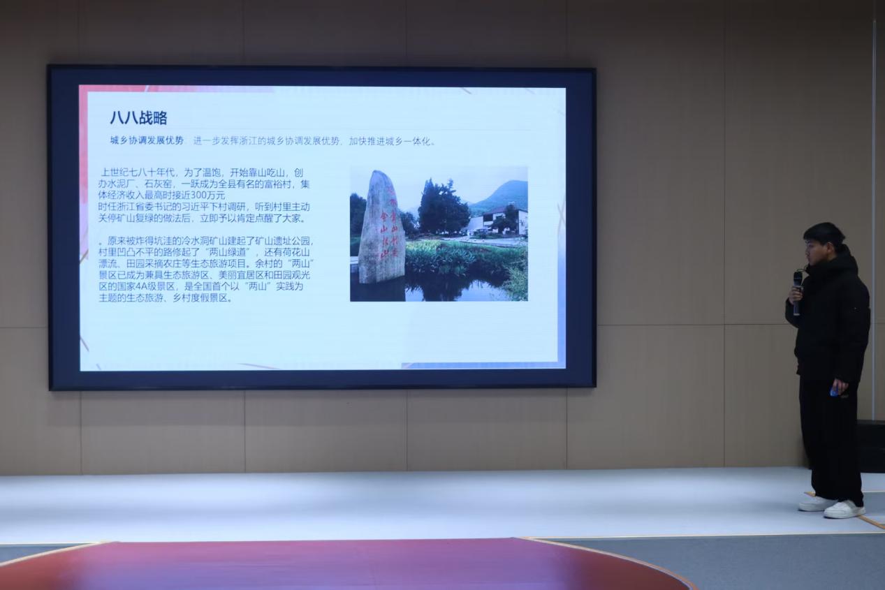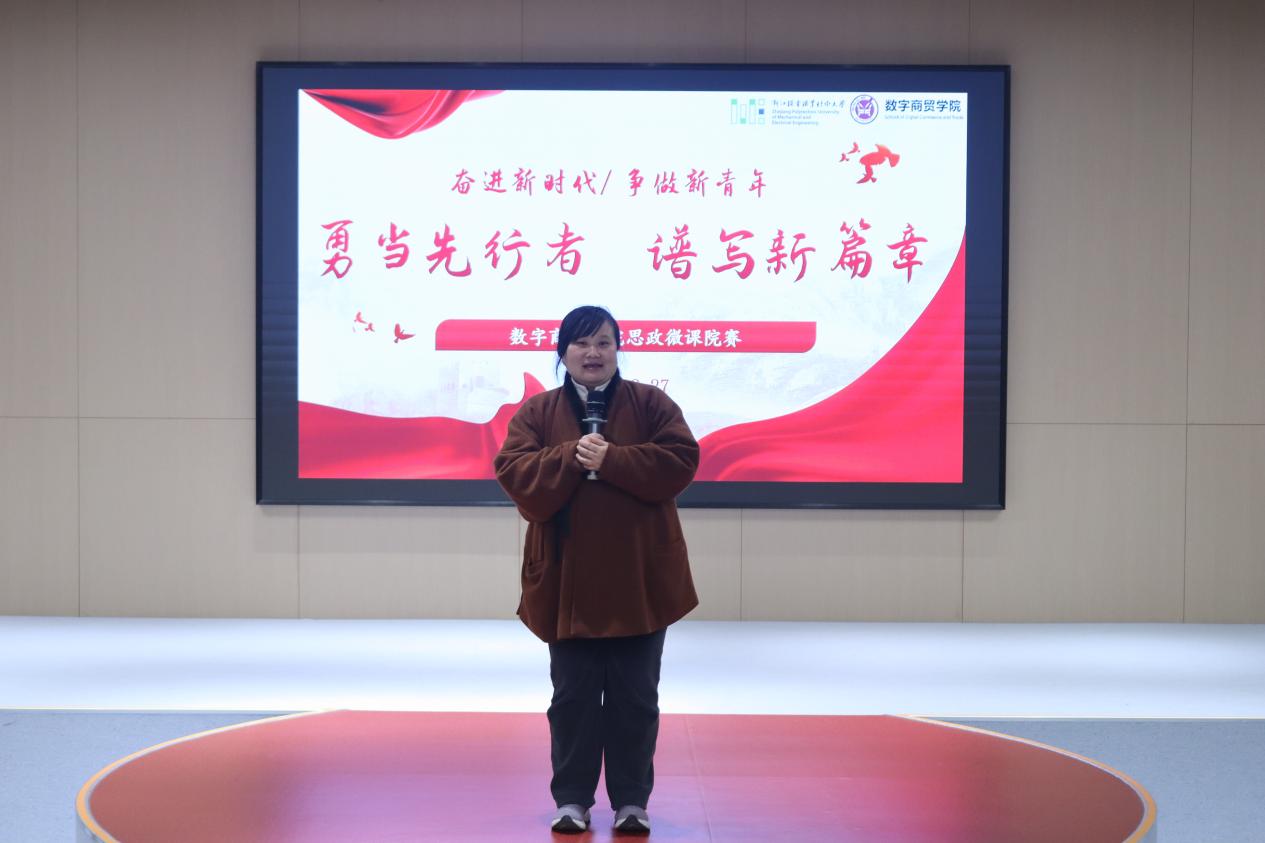 为深入学习宣传贯彻习近平新时代中国特色社会主义思想、党的二十大精神,进一步强化对学院青年学生的思想政治引领,带领团员青年忠实践行“八八战略”,坚定捍卫“两个确立”,坚决做到“两个维护”,在新征程上奋力推进“两个先行”,唱响“我在窗口写青春”最强音。2月27日晚,2025年数字商贸学院思政微课比赛在19-106小剧场顺利举办。