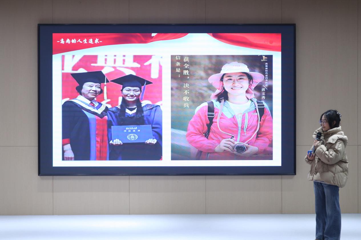 在比赛中,同学们以饱满的热情和严谨的态度,精心制作了PPT,围绕主题进行了深入的阐述。从党的光辉历程到革命精神的传承,从党领导中国青年运动的光辉足迹到英雄人物黄文秀、张桂梅的感人事迹,再到脱贫攻坚工作的艰辛与成就,每一份汇报都凝聚着同学们的心血和智慧。