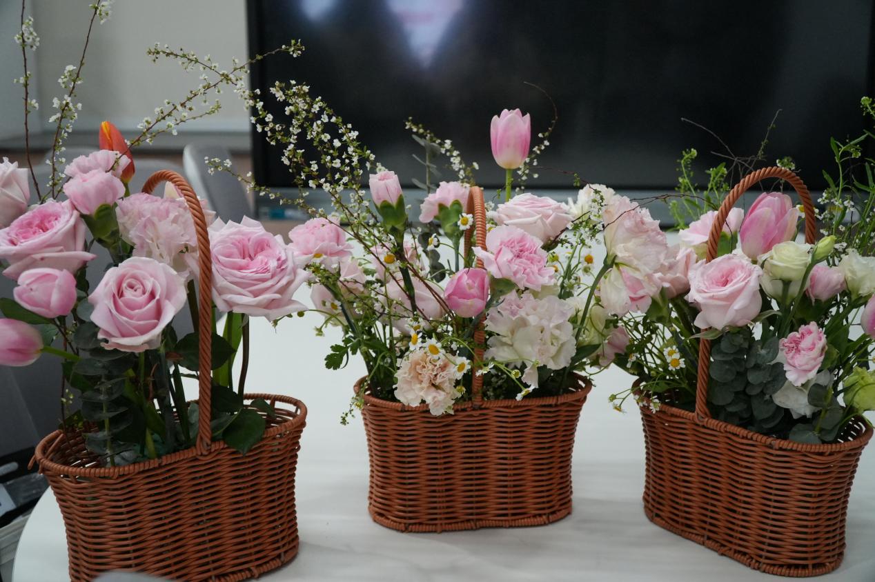 教师们纷纷发挥创意,将手中的花卉巧妙组合,设计出一件件独一无二的花艺作品。有的作品清新脱俗,宛如春日里的一缕清风;有的则大气磅礴,展现出女性的坚韧与力量。每一件作品都是参与者个人审美与艺术表达的完美呈现,更是对传统文化与现代元素融合的生动诠释。