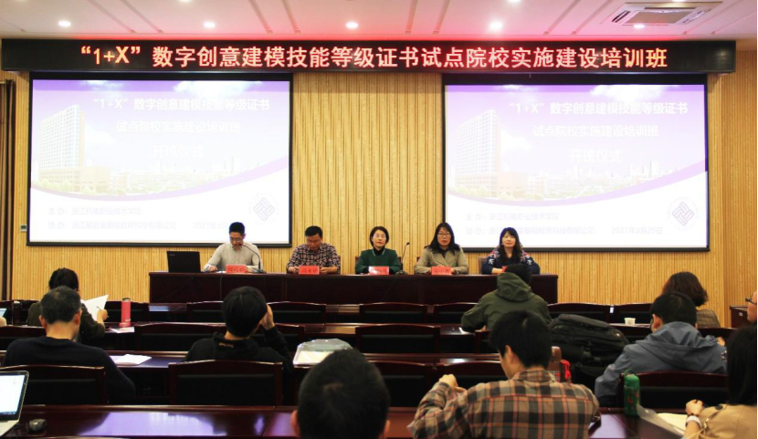 此次培训的师资由浙江易启莱朗顿教育科技有限公司和我校创意设计学院共同组织确定,邀请标准编写、教材开发工作组的核心专家,行业、企业、院校专家进行联合授课,课程内容安排了包括双高建设背景下的1+X证书的开发思考、高水平专业群建设路径与举措、培训评价组织试点工作规划及教辅平台支持、“1+X”数字创意建模技能等级证书试点院校实施案例分享、考核站点建设及考务工作介绍、“1+X”数字创意建模技能等级证书与课程实践研讨等。