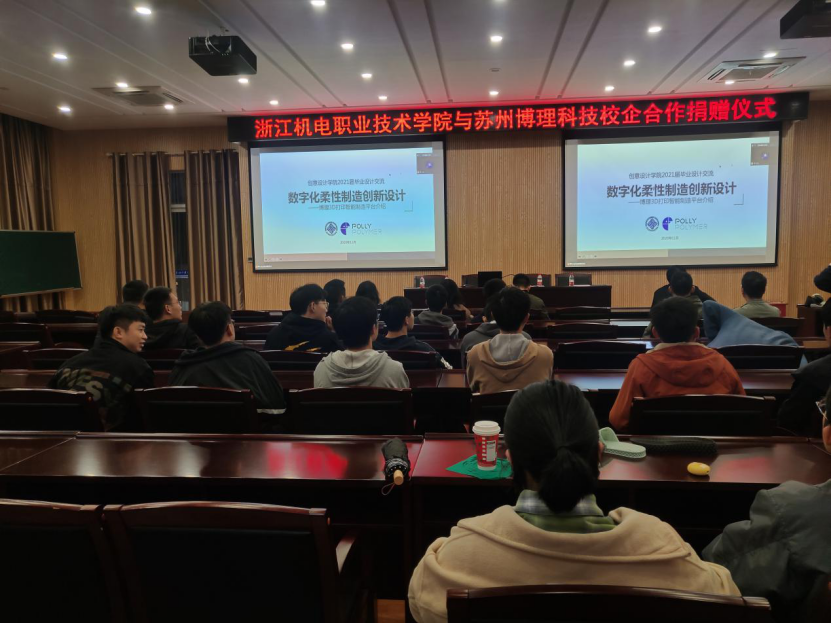 苏州博理新材料科技有限公司副总经理张束胜先生在致辞中表示,苏州博理新材料科技有限公司是一家致力于智能制造的高新技术企业。公司以工业还有信息化部工业文化发展中心增材制造研究院和中科院国家纳米中心作为技术支撑,集3D打印、逆向工程、VR技术、智能机器人的研发、制造、销售、服务、培训为一体。公司立足于自主创新,深耕智能制造工业、航空航天、教育等智能制造细分领域,在光敏树脂、航空航天高性能增材制造硅橡胶材料、鞋材增材制造材料、高性能3D打印工程材料等领域处于领先地位。此次能够与全国双高建设高职院校前十的浙江机电职业技术学院开展深度的校企合作,也感觉非常的荣幸。本次合作项目的开展,看中的是创意设计学院的学子脚踏实地的学习态度和老师较高的教研水平,希望能够藉由本次合作为社会、为市场开发出新的爆款和热点,让其如同大地上升起的新星,并掀起一波不小的“追星潮”。公司也将对毕业设计项目给予全力的支持,并且对爆款、热点给予市场化的认可和支持。