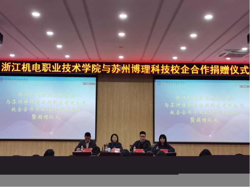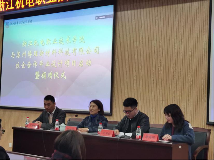 2020年即将迎来收官,创意设计学院毕业设计项目也已经启动。本着“为企业服务而设计”的初衷,增强校企之间的合作,让学生的毕业设计项目真正符合市场的需求,能够经得起市场的检验,11月26日下午13:30我院于滨江校区五号楼二号厅举行校企合作毕业设计项目启动暨捐赠仪式。出席本次仪式的领导有苏州博理新材料科技有限公司张束胜副总经理,浙江机电职业技术学院党委委员、创意设计学院院长邓劲莲教授,创意设计学院季海祺副院长及研修相关毕业设计项目的师生代表。本次仪式由创意设计学院办公室主任刘博盛老师主持。