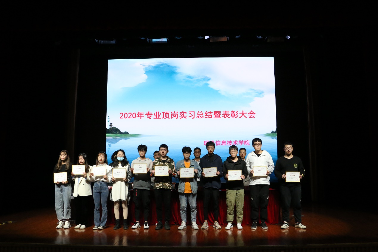 10月21日下午,现代信息技术学院在5号楼报告厅隆重召开了“2020年专业顶岗实习总结暨表彰大会”。现代信息技术学院院长卢涤非,党总支书记、副院长任峰,副院长王芳,全体指导教师和2018级的学生参加了会议。会议由产学办主任梁启来老师主持。
