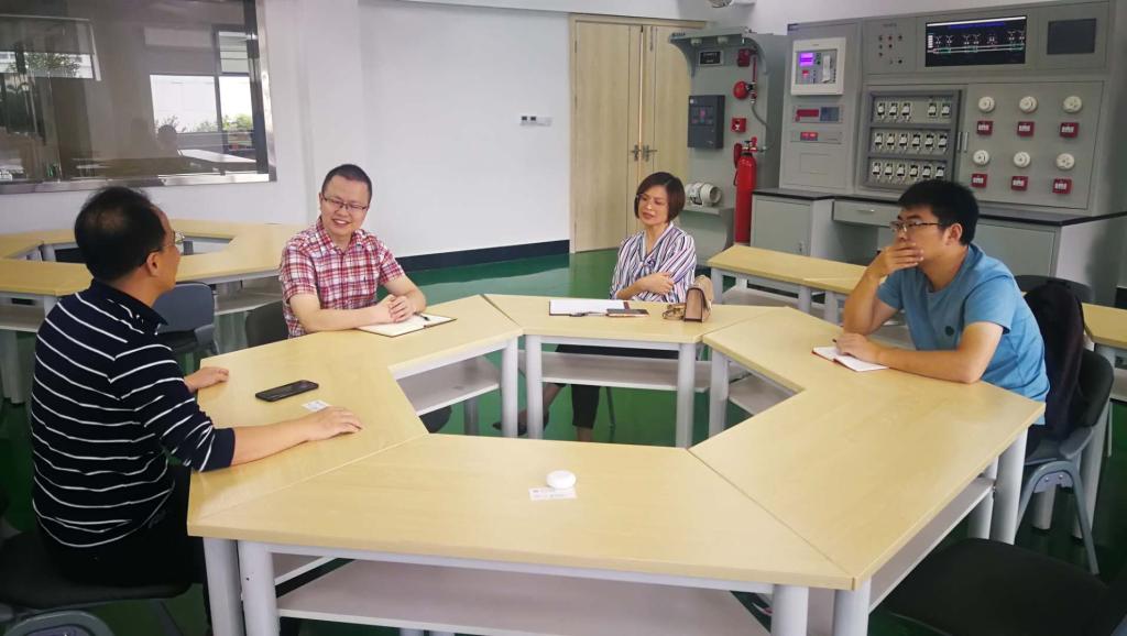 边浩毅院长向周燕军副院长一行详细了实训基地的建设方案、实训设备配置和使用情况、轨道交通专业建设、产教融合发展、专业人才培养等相关情况。双方就专业建设、人才培养方案、实训基地建设、教学工作、师资队伍建设等开展了深入地探讨,双方希望进一步加强交流与合作,并就轨道交通信号工考证、师资培训等方面达成了合作意向。