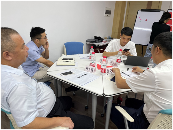 职业能力分析会安排在学校教发中心3楼的研讨会议室。前期研讨会准备如下:1.会前随机抽签,异质分组:企业+中职+高职4-5人一组,按会议室布置规则摆放座位名牌;2.每组配一台拷贝有2张PGSD能力分析表的笔记本电脑,桌上摆放3种颜色的纸(20张左右A4对半大小),记号笔1-2,白板及磁铁N个;3.现场有投影设备,并安排全程录像,为课程建设准备素材和佐证材料。