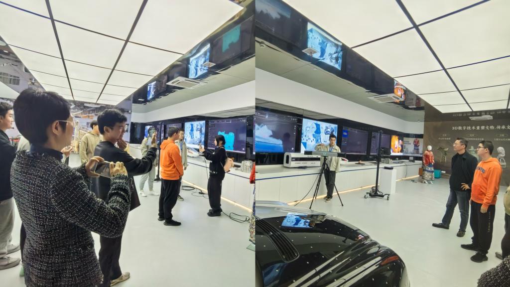 参观过程中,先临三维科技股份有限公司的杨杰老师为师生们详细介绍了高精度三维视觉技术在高端制造、精准医疗、定制消费、启智教育等领域的数字化应用。在先临工程师的指导下,师生们通过互相交流、亲自感受,近距离体验了三维扫描仪,了解到不同行业领域应用,感慨三维视觉技术的强大与奇妙。师生们感觉这堂现场课意义非凡,很有价值,让他们认识、并深入了解到这个新兴的行业和背后的强大就业前景。