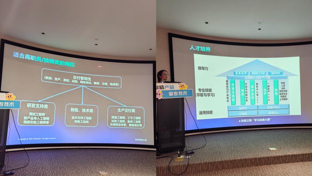 参观结束后,先临三维科技股份有限公司的人力资源部老师为即将在2024年毕业的学生做了一场精彩的招聘宣讲。宣讲中企业HR老师指出,先临总部位于“中国视谷”的核心区,企业一直致力于研究智能视觉,旨在打造数智杭州。