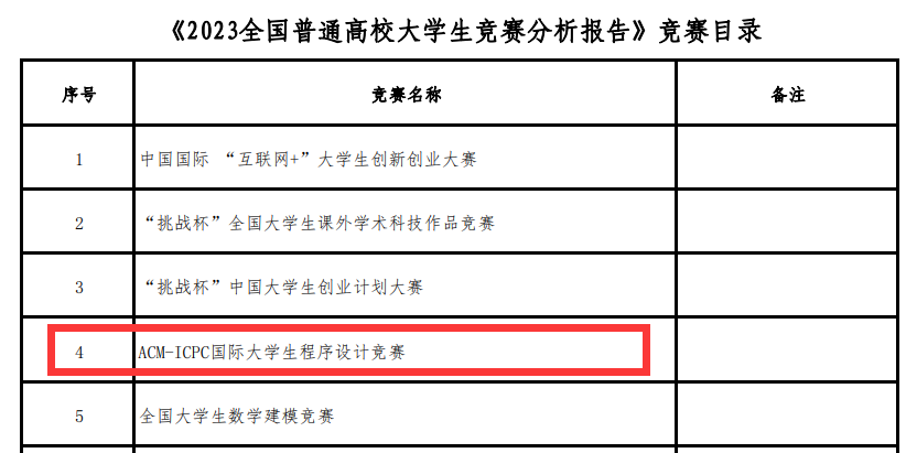 ICPC国际大学生程序设计竞赛是世界上公认的规模最大、水平最高、参与人数最多的国际大学生程序设计竞赛,是编程届的奥林匹克。该项竞赛自1970年至今,已成功举办48届,因历届竞赛都荟萃了世界各大洲的精英,云集了计算机界的“希望之星”,而受国内外知名大学的重视,并受到全世界各著名计算机公司如Microsoft、IBM、Google、华为、百度、腾讯、阿里巴巴等公司的高度关注,成为世界各国大学生最具影响力的国际级计算机类赛事,此项竞赛所颁发的获奖证书也为世界各著名计算机公司、各知名大学所认可。该竞赛是传统本科国家级A类竞赛,竞赛位列教育部高等教育学会竞赛名录第4位。