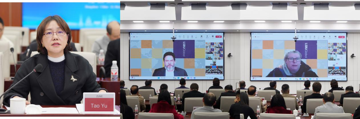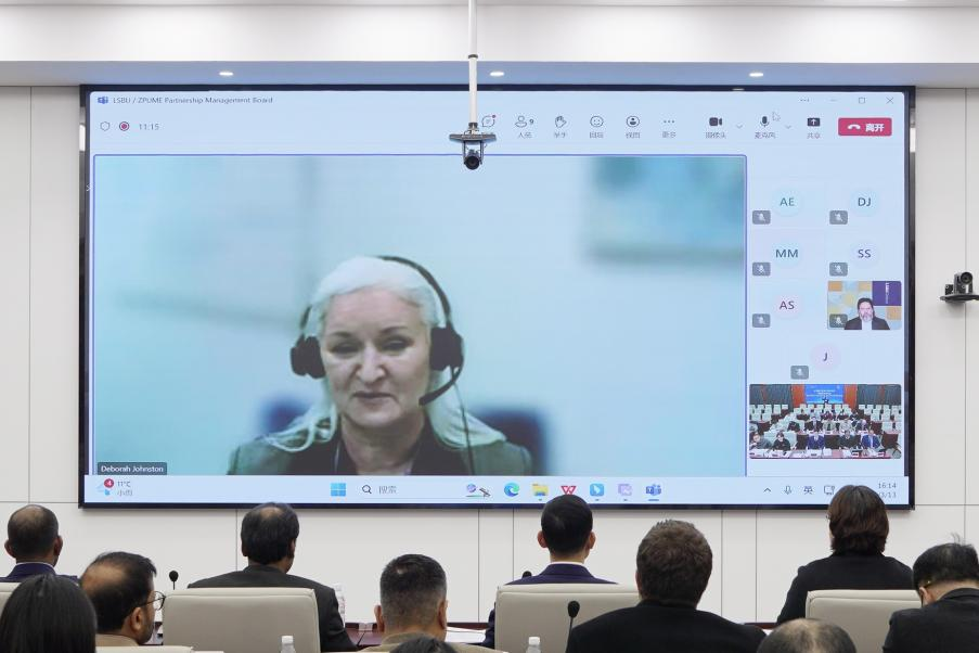 3月13日,中英数字化技术联合学院管理委员会会议在浙江机电职业技术大学顺利举行。本次会议以杭州、伦敦两地线上线下相结合的模式,借助微软Teams突破时空壁垒,搭建起双方深度交流、共商发展的平台。浙江机电职业技术大学副校长朱润晔出席会议并致辞,英国伦敦南岸大学副校长Deborah Johnston、副校长助理Stuart Bannerman、全球合作部主任Aissata Edmondson、国际部教务长Mandy Maidment、副教务长Darren James-Mitchell等通过视频连线参会。伦敦南岸大学国际部副教务长Raveendran Sundararajan、质量督导部主任Ian Govender、高级教学质量顾问Kalpesh Khetia,我校国际教育学院院长陶宇、副院长张伟中、智能制造装备技术专业教研室主任郁元正、物联网应用技术专业负责人查娟、跨境电子商务专业教研室主任陈竹韵、工业设计专业教研室主任沈佳彬等线下参会。