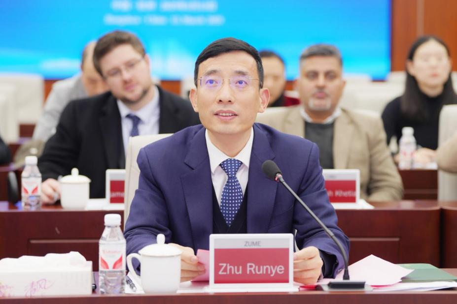 会上,副校长朱润晔代表学校向出席会议的英方同仁表示热烈欢迎,并对多年来为两校共建数字化技术联合学院付出辛勤努力的工作人员表示诚挚感谢,同时对两校人才共育方面取得的丰硕成果给予高度肯定。朱润晔从宏观战略高度阐述了学校的发展规划,强调将全面系统地推进高质量职业本科发展,开启“二次创业”新征程。同时,表达了与伦敦南岸大学进一步深化合作的美好愿景,期冀两校探索更深层次的合作模式,开拓中外合作办学层次从专科到本科的全方位跃升,为培养更多具有国际视野、专业精湛的高素质技能型人才勤耕不辍。