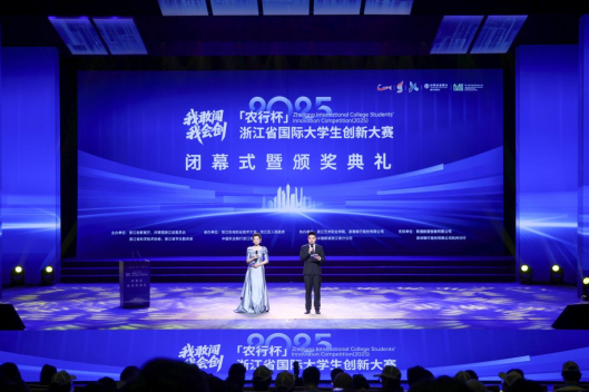 7月13日下午,“农行杯”浙江省国际大学生创新大赛(2025)闭幕式暨颁奖典礼在浙江实验艺术剧场举行。浙江省学生联合会执行主席陈彦廷;浙江机电职业技术大学党委书记汤兆武、校长贺星岳、党委副书记陈剑波,中国农业银行浙江省分行党委委员、副行长胡隽,浙江艺术职业学院校长施俊天,浙商银行党委委员、驻行纪检监察组组长祝昌联,中国联通浙江省分公司党委委员、副总经理戴苓等出席。全省97所高校校领导、师生代表共1000余人现场参加活动。闭幕式通过网络同步直播。