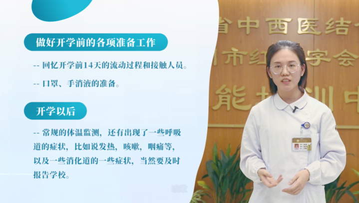 开学后的疫情防控,更需要同学们日常的重视。最近,浙江机电职业技术学院请来杭州市红十字会医院的援鄂医疗队员、该校驻校健康指导员周云霞,为大家带来《健康安全说》。
