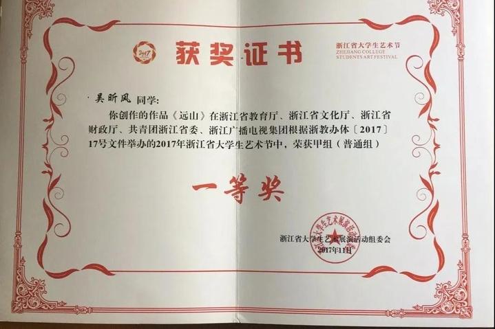 产品1642吴昕风同学作品《远山》获浙江省大学生艺术节甲组一等奖