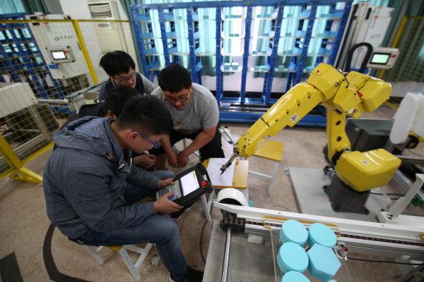 机电一体化专业教师孟庆波对“工业4.0”的教学已经摸索了三年,还编写了一本名为《生产线数字化设计与仿真(NX MCD)》的教材,将于明年3月份出版。
