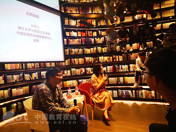 今年是五四运动100周年,也是中华人民共和国成立70周年。4月30日,习近平总书记在纪念五四运动100周年大会上发表重要讲话。五四传统、做新时代的奋进者、开拓者、奉献者,成为无数高校学子共同的心声。浙江机电职业技术学院思政老师将传统的思政课堂搬到了被网友誉为“中国最美书店”的钟书阁,在缕缕书香中重启和激活五四话语,铭记光荣岁月,弘扬民族精神。