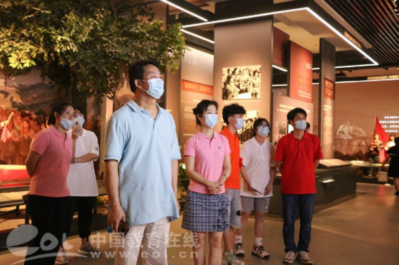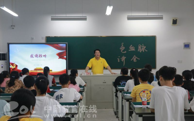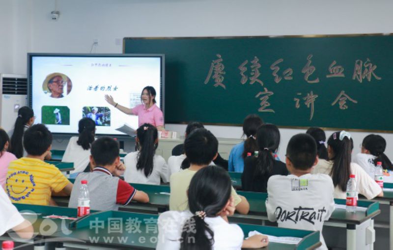 在梅城中学,余宏伟校长带领国际教育学院暑期实践团参观学校校史长廊,回顾学校办学历程,介绍历代校长与名人校友,并就校本课程《严州诗韵》融入书法教学进行了探讨。之后,何香妤、郭展帆与李妍三位学生代表向梅城中学的同学们开展了主题为“赓续红色血脉”的演讲,跟同学们分享七一勋章获得者的感人故事,学生们认真听讲,从七一勋章获得者们的身上汲取奋进力量。