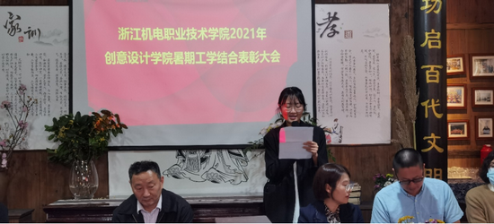 秋风送爽,金桂飘香,10月27日下午,浙江机电职业技术学院创意设计学院2021暑期工学结合表彰大会暨2022届毕业设计启动仪式在充满了艺术气息的画外桐坞“石榴籽村社驿站”内隆重举行。