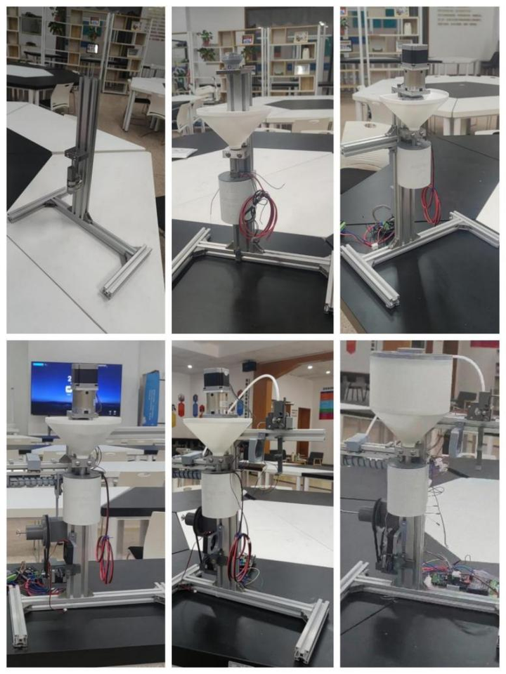 二代机共拥有9大功能模块,包括拥有3D打印废料的破碎切割、可回收废料的切割、3D打印废料成分分析、3D打印废料回收效果的评估、3D打印耗材的质量保障、废料的恒温加热技术、待回收材料重塑均匀成型技术、成型耗材的可使用量评估、装置的安全维护与保障等。与初号机相比,基于热分解技术的设备成本降低60%以上,回收速度提高30%以上。同时,同学们还对设备的结构和控制系统进行了改进,使用独立创新的品字形结构筛网、独立高效的高精度算法,有效提高了设备的稳定性和耐用性,使操作更加简单和便捷。