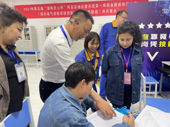 “本次比赛是阿职院第一次承接并成功举办大型赛事,从赛项申报、组织、实施和前期的师生训练都得到了援疆老师的精心指导,并得到浙江机电职业技术学院的大力支持和帮助,感谢浙江机电职业技术学院千万里的大力支持。”阿职院机电工程学院董院长深情地说。