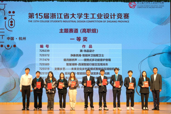 第十五届大学生工业设计竞赛基于为提升大学生创新能力和实践能力,加快工业设计创新人才培养,推广以创意先导带动制造业发展理念。本届竞赛分为主题赛道和三大产业赛道,主赛道初赛共收到各院校作品 791 件 (本科 621 件,高职 170 件),参赛院校和参赛队伍数量再创新高。浙江机电职业技术学院创意设计学院13件作品(本科3件,专科10件)从791件主赛道作品中崭露头角,入围5项决赛作品,全部摘金!其中,与浙江科技学院联合培养的工业设计专业本科生1件作品更是突破层层重围,从全省决赛93件本科作品中脱颖而出,勇夺金奖!专科组全省金奖仅有9席,我校独占鳌头,摘得4金!
