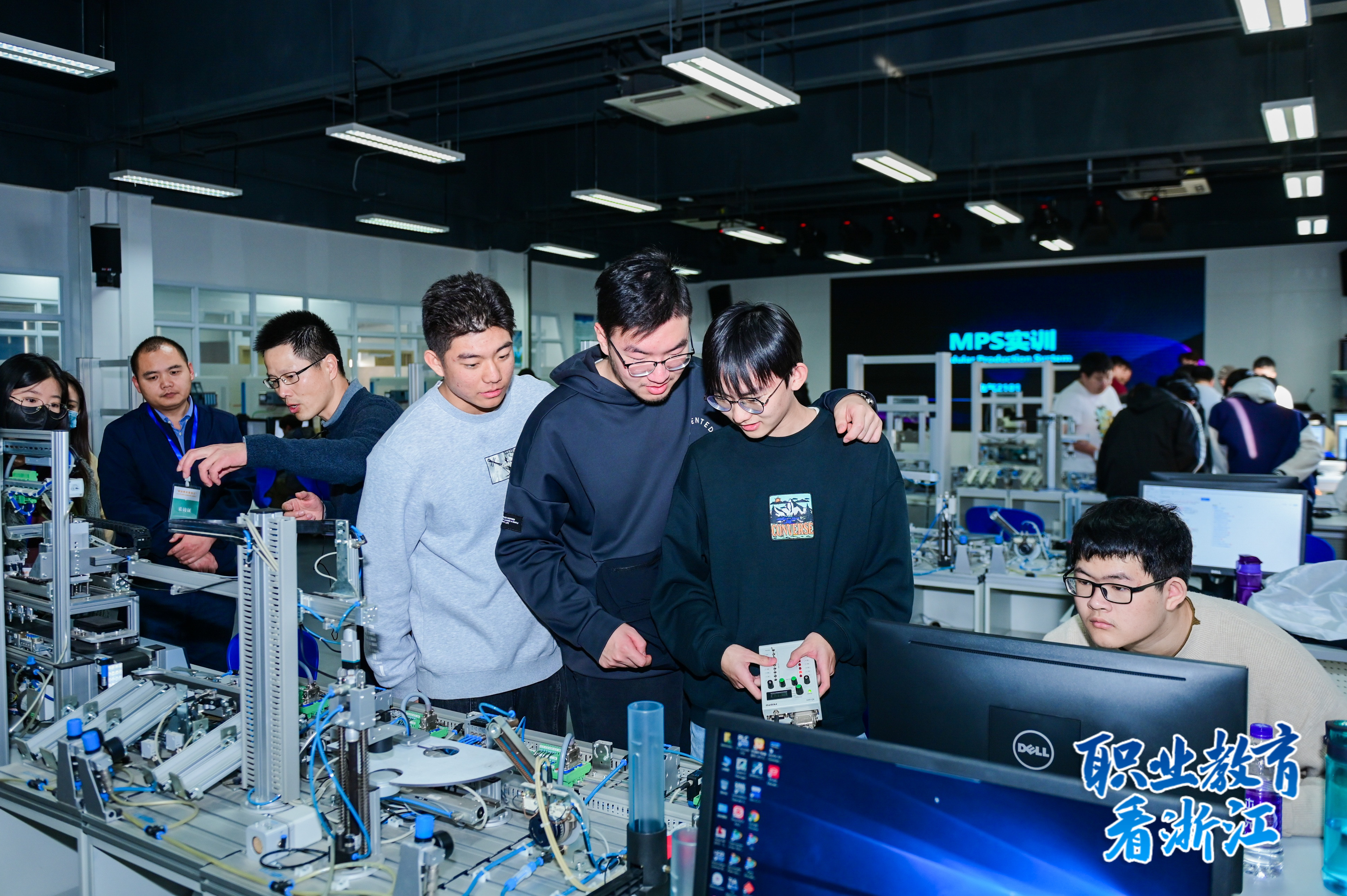 走在浙江机电职业技术学院随处可见的不再是传统教室,而是新技术引领的学习型智能工厂、虚拟仿真实训室等生态化产教融合示范实训基地。