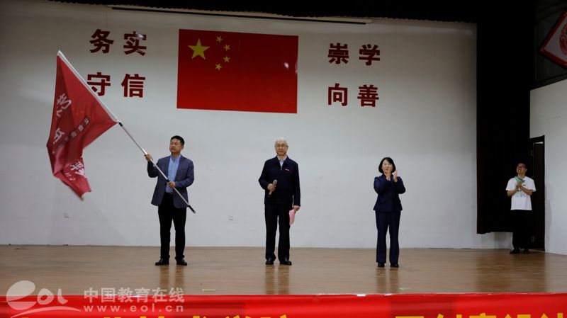 随后,灰坪乡党委副书记、乡长袁志斌从浙江机电职业技术学院党委委员、创意设计学院院长邓劲莲手中接过乡村巡展的授旗。浙江机电职业技术学院校长贺星岳宣布此次灰坪乡村巡展活动正式开幕。