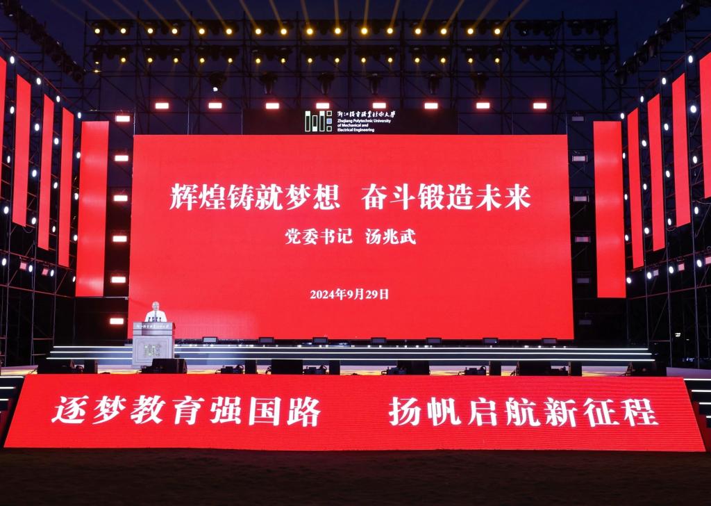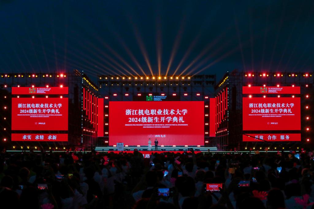 9月29日晚,浙江机电职业技术大学2024级新生开学典礼暨迎新晚会在学校滨江校区隆重举行。校党委书记汤兆武,校长贺星岳,校领导班子成员朱润晔、孙丽园、陈剑波、周增逵、郑东、王斌、陈宇出席开学典礼,全体中层干部、教职工代表等参加典礼,一起见证新生们的梦想启航时刻。