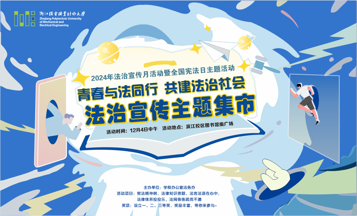 浙江机电职业技术大学开展以“青春与法同行,共建法治校园”为主题的法治宣传集市活动,通过“宪法精神树”集章、法律知识答题、法律条文及感悟分享、“法律体系投投乐”投篮游戏和“法网恢恢疏而不漏”套圈游戏,让师生们在分享、学习和互动中,更加深入地理解法律知识。