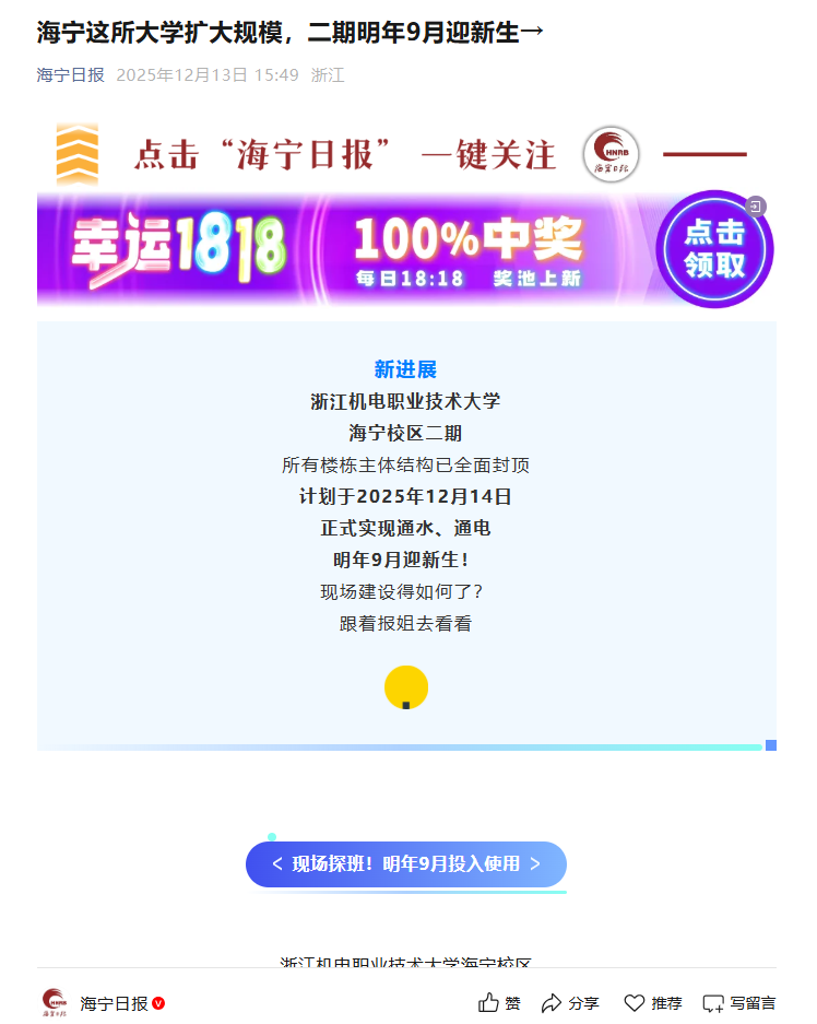 鱼䲆鱻䲜,鱼跃机电“上一次捕鱼还是4年前!”“最重的有30斤,我都抱不动了!”12月3日浙江机电职业技术大学海宁校区一场喜气洋洋的捕鱼活动拉开帷幕此次共捕捞约600斤鱼全校师生免费吃眼馋了!上午9时,校园里桑梓河畔已聚集了众多师生。“快看,网动了!”“那边有鱼跳起来了!”伴随着阵阵期待的欢呼,捕鱼活动正式开始。“一二三,收网!”捕鱼师傅一声吆喝,渔网逐渐收紧,水面开始沸腾。只见拖网在波光粼粼的水面划出弧...