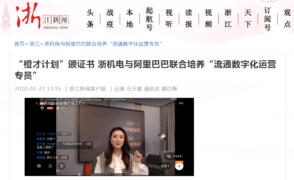 记者 石天星 通讯员 路红梅近日,浙江机电职业技术学院国贸专业跨境电子商务方向的冯佳佳,和该校参加阿里巴巴1688“橙才计划”首期培训的132名2018级同学,通过阿里的考核拿到了“流通数字化运营专员”的证书,这标志着自2019年10月起,浙机电和阿里巴巴企业一起合作的电商后备人才培养取得了阶段性成果。2019年,浙江机电职业技术学院数字商贸学院率先和阿里巴巴1688中小企业商学院达成合作协议,开启了联合培养计划。第一批...
