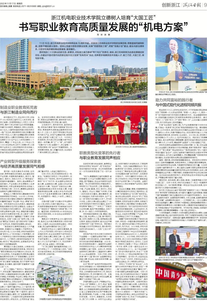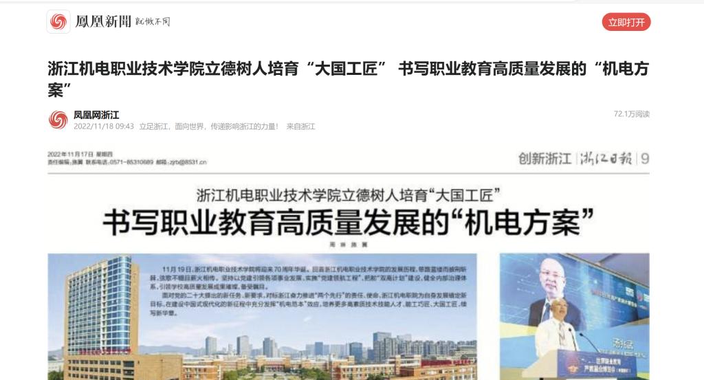 [凤凰新闻客户端]深入贯彻党的二十大精神 七秩华章再出发丨浙江机电职业技术学院科研工作巡礼:主动服务高水平科技自立自强 创新引领发展