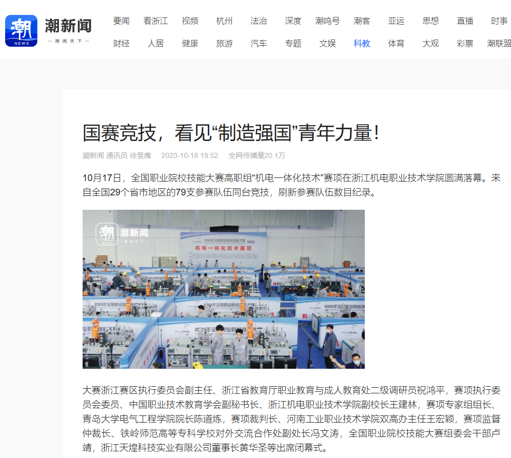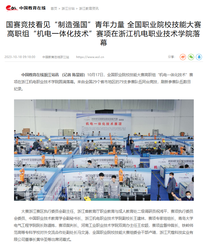 [Z视介]2023年全国职业院校技能大赛高职组机电一体化技术赛项在杭州顺利举行
