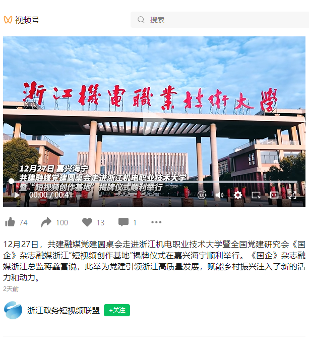 [潮新闻]共建融媒党建圆桌会一一走进浙江机电职业技术大学暨“全国党建研究会《国企》杂志融媒浙江短视频创作基地”揭牌仪式举行