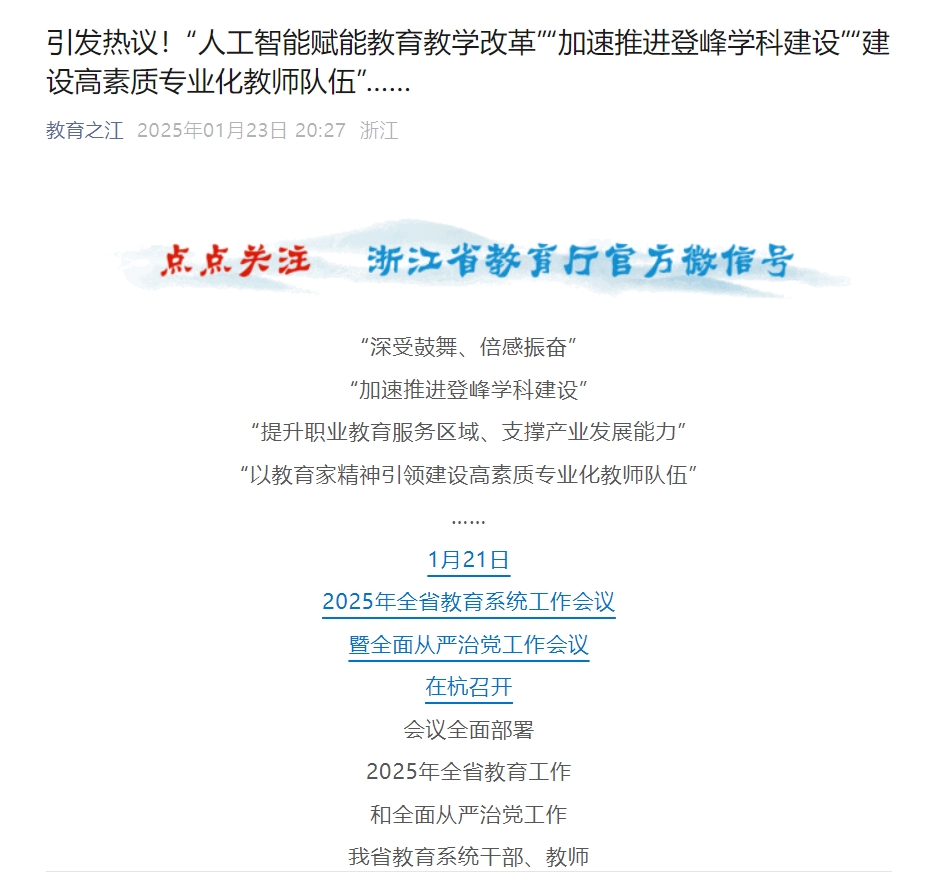 [教育之江]引发热议!“人工智能赋能教育教学改革”“加速推进登峰学科建设”“建设高素质专业化教师队伍”……