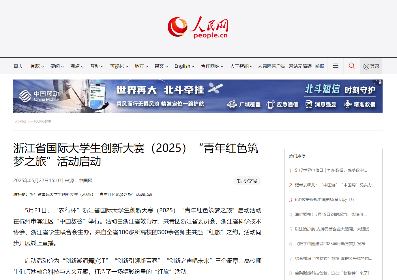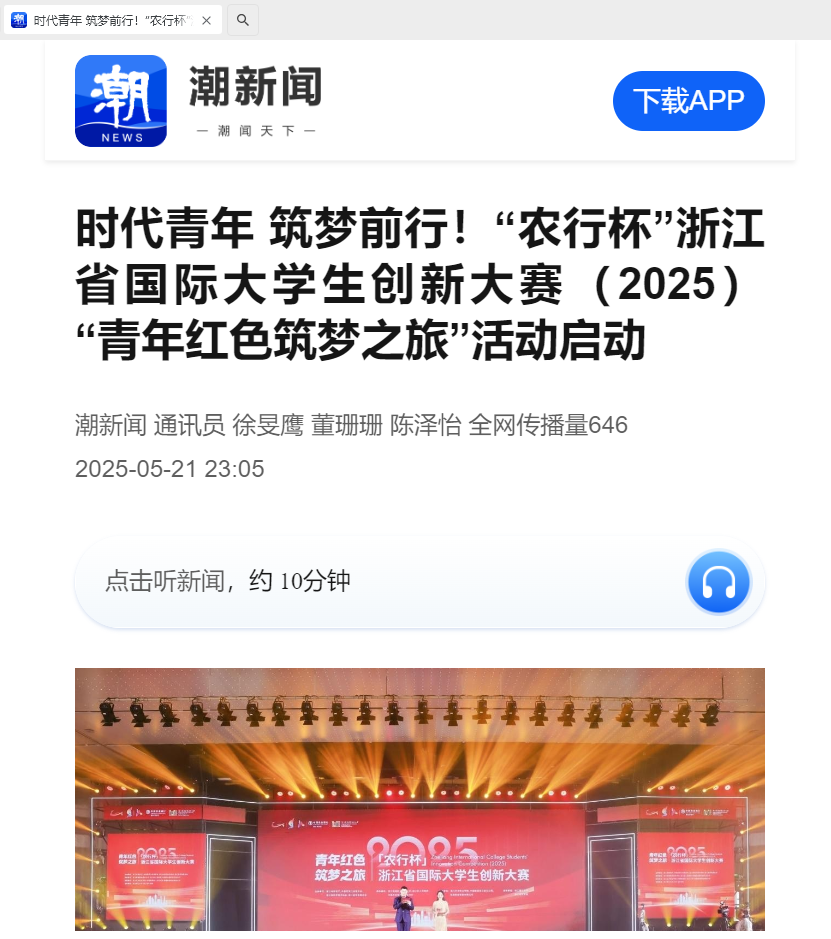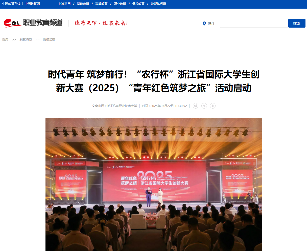 [中国教育在线]时代青年 筑梦前行!“农行杯”浙江省国际大学生创新大赛(2025)“青年红色筑梦之旅”活动启动