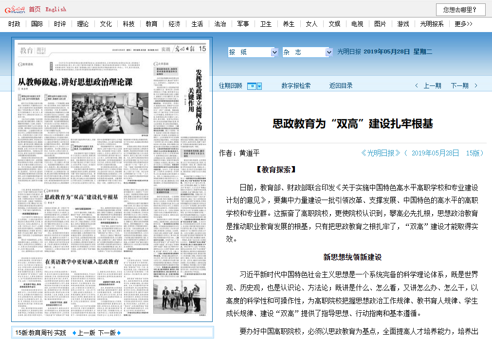 [光明日报]思政教育为“双高”建设扎牢根基