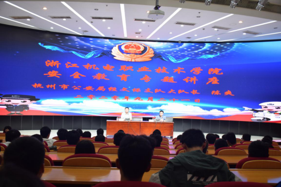 为增强同学们的安全意识,提高防范技能,维护财产安全,9月21日晚,学校保卫处特邀杭州市公安局经济文化保卫支队大队长陈爽、杭州市交警大队刘万胜警官在综合楼四楼报告厅开展安全教育专题讲座。讲座由保卫处副处长温长胜主持。智能制造学院及自动化学院寝室长200余名同学参加了讲座。在讲座中,陈爽警官用具体的数据和视频向同学们展现了电信、网络诈骗的各项案例。详细介绍了利用微信、QQ、电话、微信冒充熟人、好友诈骗,“...