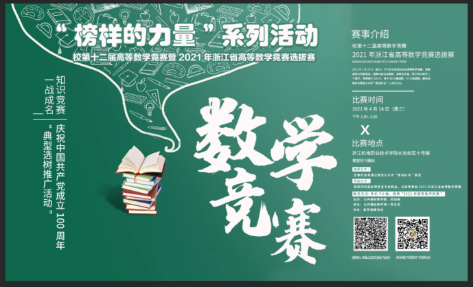 为庆祝中国共产党成立100周年“典型选树推广活动”, 2021年4月25日,由公共基础教学部及校团委共同主办、公共基础教学第一党支部承办的“一战成名”校第十二届高等数学竞赛暨2021年浙江省高等数学竞赛选拔赛颁奖在长安校区18号楼303会议室举行,数学教研室主任宋维老师出席并颁奖。 在数学教研室范献胜老师的指导下,经过3月初的校数学建模协会宣传,来自全校8个不同分院的100多名学生参加4月14日校内高数竞赛选拔赛,最终28位...