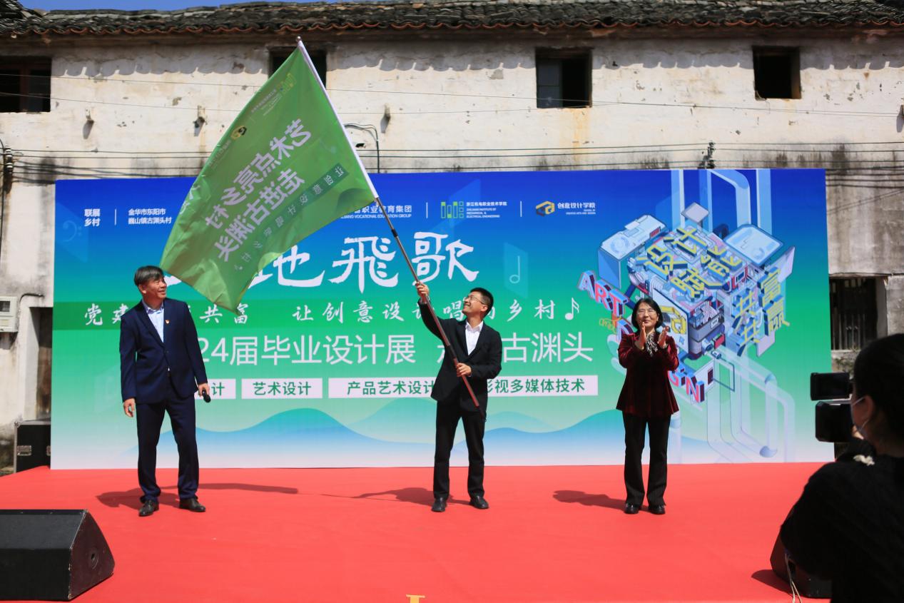 为深入贯彻党的二十大精神,认真贯彻落实习近平总书记“把论文写在祖国大地上”的重要指示精神,浙江机电职业技术学院创意设计学院以“大地飞歌-让创意设计唱响乡村”为主题,与金华市古渊头村、衢州市灰坪乡、丽水市联丰村共同举办2024届毕业设计展乡村巡展。4月9日,乡村巡展第一站在东阳市巍山镇古渊头村拉开帷幕。浙江机电职业技术学院党委委员,创意设计学院院长邓劲莲、学校学生工作部部长王汇、巍山镇党委书记马宗强、古...