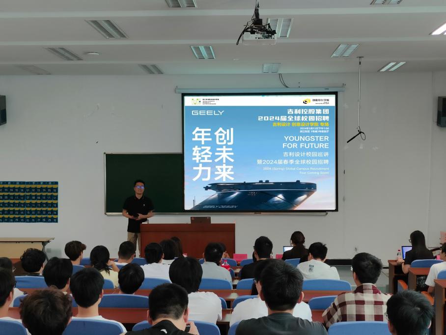 为加深校企合作,精准选拔优秀人才到优秀企业,5月15日下午,创意设计学院邀请吉利创新设计院一行四人来校开展2024届校园招聘校企合作宣讲会暨HR进校园活动,活动在5号楼报告厅举行,来自工业设计专业汽车数模设计方向的100余名毕业生及在校学生参加,大会由创意设计学院工业设计教研室主任沈佳彬主持。吉利创新设计院的代表们通过PPT、视频等形式,生动地向学生展示行业的发展历程、企业文化、组织构架、人力资源政策等内容。...